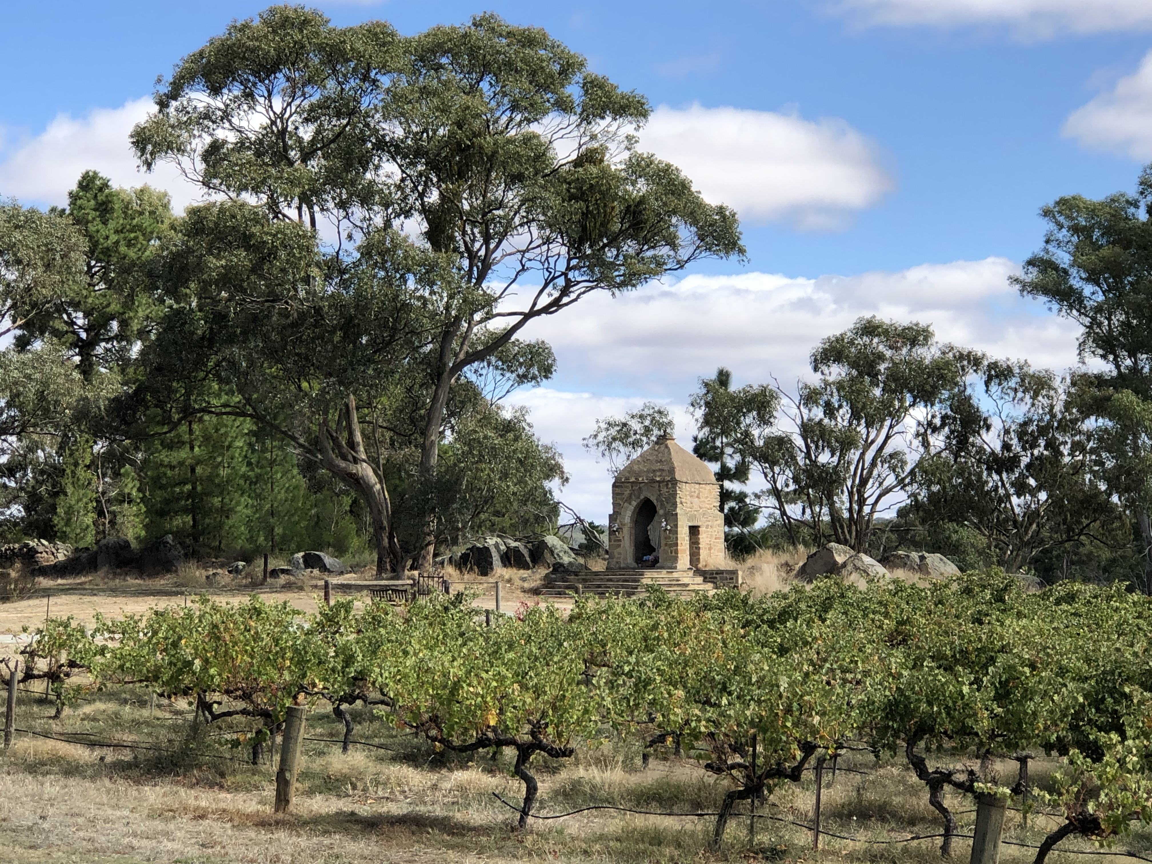 Sevenhill, in fact, is more than just a retreat center. It’s a site of historic importance to the Catholic Church in Australia, the place were the Jesuits first settled in the new continent, building a church and a college–and planting a vineyard. The first Jesuits in Australia were Austrians, accompanying Prussian refugees displaced by Bismarck’s persecution of Catholics. They planned boldly. The name “Sevenhill” does not refer to any Australian geographic feature, but is an allusion to the seven hills of Rome. They saw themselves founding a Rome Down Under.