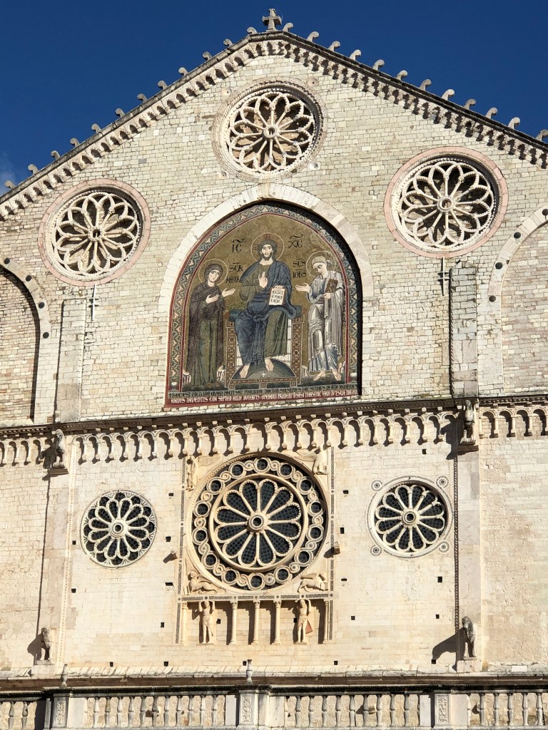 Every semester the Jesuits in the Gregorian community also get away for a day trip, which involves a bit of relaxation together and a very big meal. This year’s trip was to the Umbrian hill town of Spoleto, the sort of place where one finds Italy at its most picturesque. Highlights include a fortress that became a papal and then state prison and a 12th century cathedral. The cathedral’s highlight is an apse fresco of the Life of the Virgin Mary (started in 1467) by the Renaissance master Fra Filippo Lippi. I’ve shared some of the frescoes on my Facebook page at Christmas time, but the colorful Coronation seems an apt scene for the Solemnity of Mary Mother of God (January 1). The work also contains a hint of scandal–Lippi, a Carmelite friar, painted himself into the scene along with Lucrezia Buti, a novice in a Florentine convent who became the artist’s model and then his, ahem, mistress. Perhaps they got a pastoral, but not a liturgical, blessing.