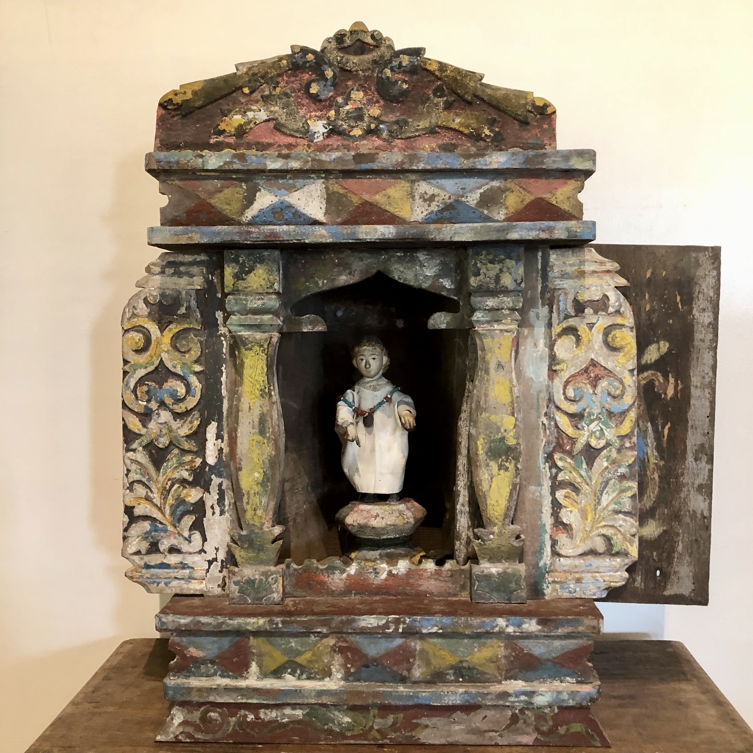 One of my discoveries when visiting the island of Bohol, home to the iconic Chocolate Hills, was a particular local devotional tradition, the “urnas,” which are small shrines made for homes during the colonial period. The urnas first caught my attention in the museum of the Church of St. Augustine in Manila (below), but it was only when I arrived in Bohol that someone explained the tradition. The urnas typically contain a saint and are beautifully carved and painted.