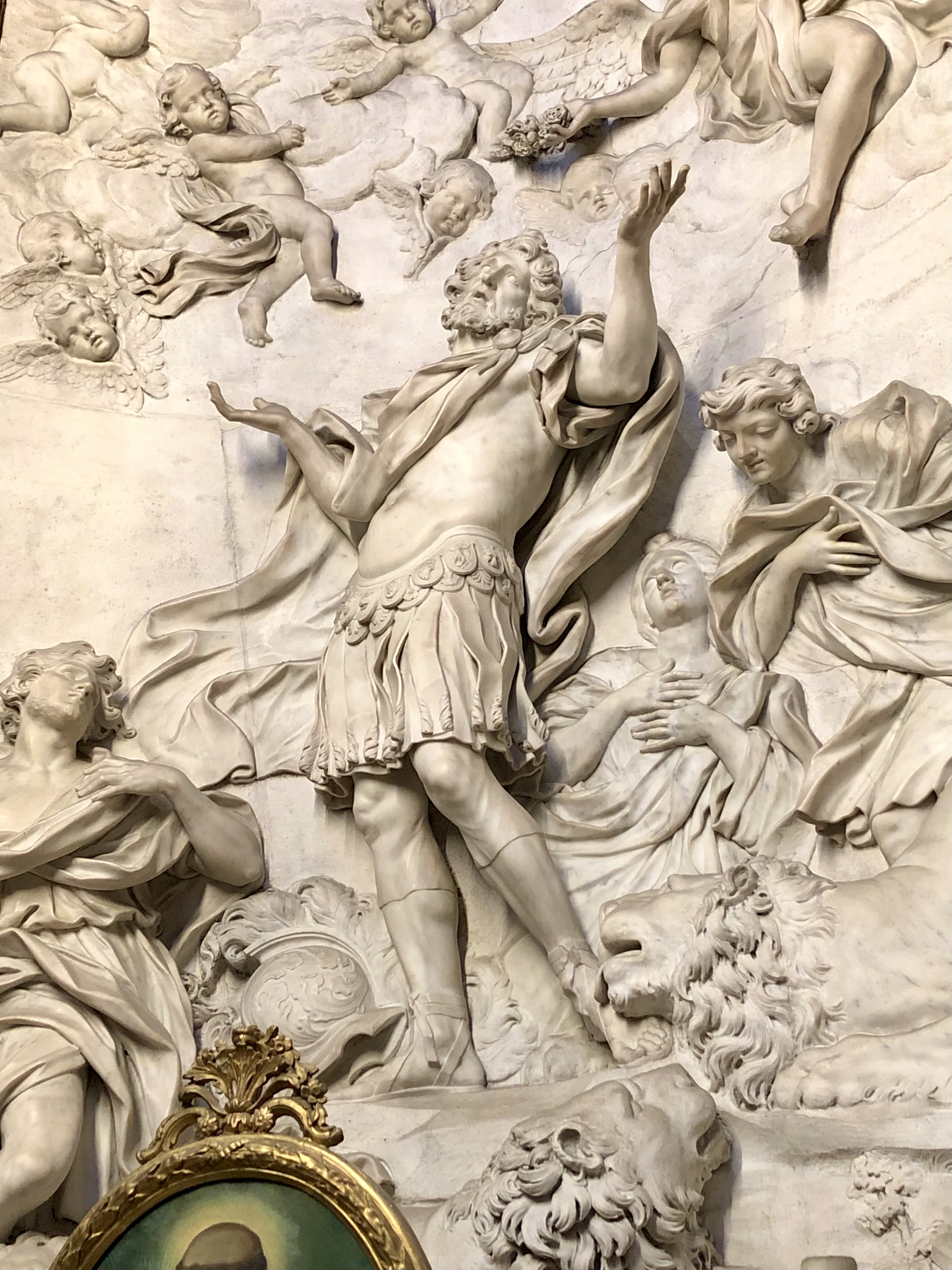 The reliefs depicting these saints are full of baroque drama–and give us Christians living in a far more comfortable age a lot to think about.