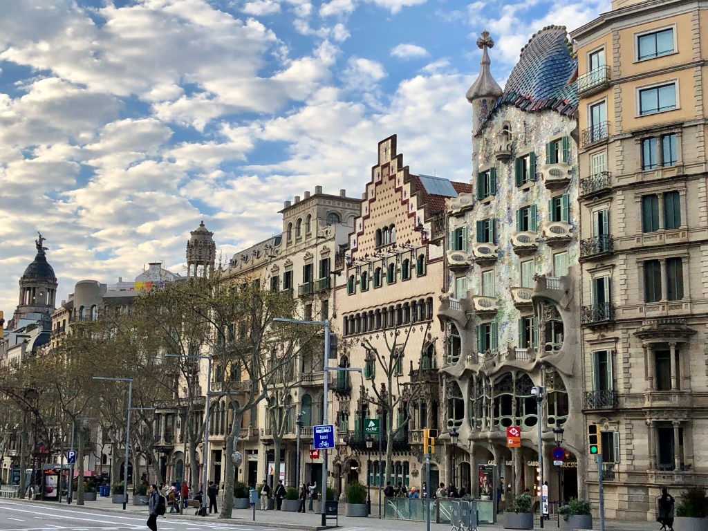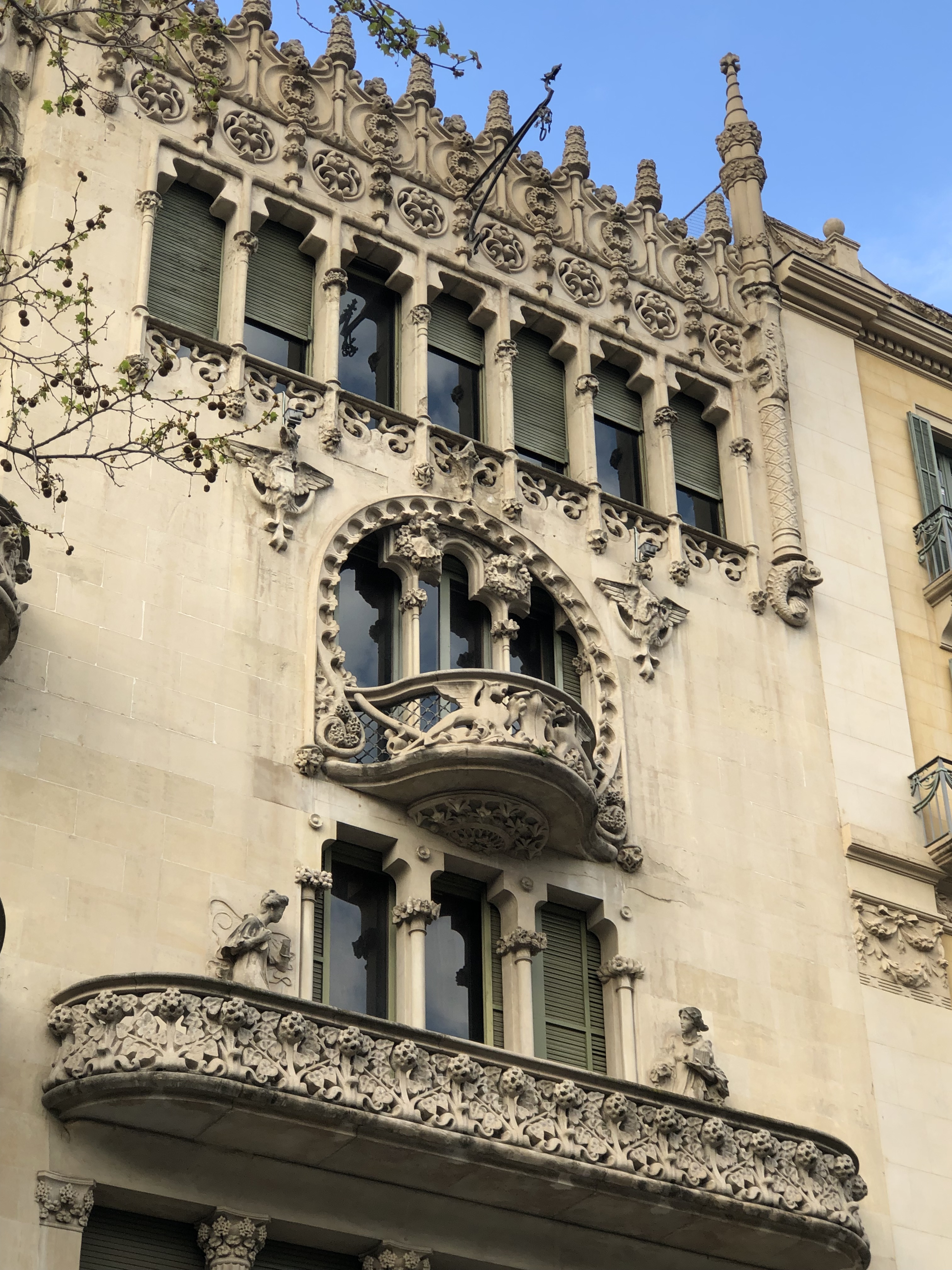 Casa Batlló is located on a remarkable block known as the Illa de la Discòrdia — the Apple of Discord. The block earned the name because of the conflicting architectural styles represented there. In fact, three of the late nineteenth century’s most famous Catalan architects put up buildings on it, each trying to outdo his predecessor. On the corner is Domènech i Montaner’s elaborately decorated Casa Lleó Morera; down the street is Puig i Cadafalch’s Casa Amatller; and right next door to that is Casa Batlló. St. George features in the decoration of Casa Amatller, which is covered with delightful gargoyle-like figures.